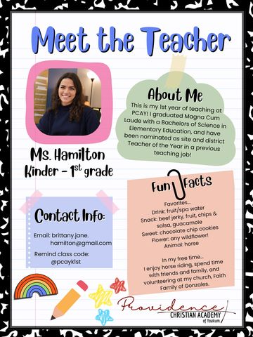 Ms. Hamilton is passionate about equipping students to become lifelong learners, and supporting educators in powerful instruction - all for the glory of God! She has taught second, third, and fourth grade and was nominated as site and district Teacher of the Year at her previous place of instruction. Ms. Hamilton graduated Magna Cum Laude with a Bachelors of Science in Elementary Education with a concentration in English Language Learners.