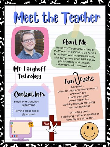 In addition to teaching how technology works, Mr. Langhoff is passionate about teaching where technology belongs in our lives. “I believe technology should serve us—not the other way around,” he says. In his classroom, students learn both the skills to use technology well and the wisdom to keep it in its proper place, so it enriches rather than controls their lives. What an important discipline to have. We appreciate Mr. Langhoff's expertise, which has been nothing short of an answered prayer.