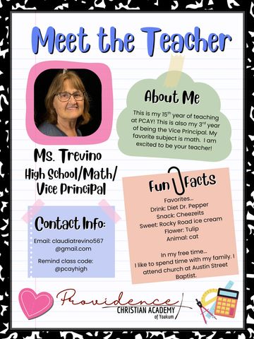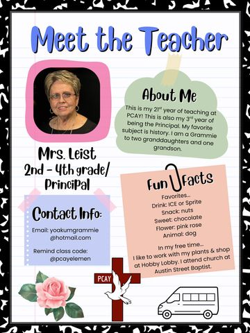 Ms. Leist has been with PCAY almost since its inception, only shy of 2 years. She is one of the reasons the school has grown to what it is today, and her love for this place and its students shines through everything she does. She has been teaching for 20+ years and continues to pour everything she has into making sure our school has what it needs and the students are receiving a Christian education from quality teachers - her being one of them!