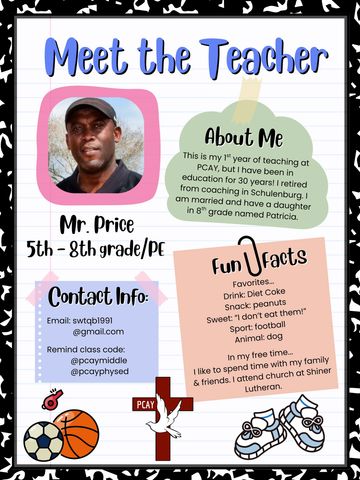 Mr. Price is somewhat of a Shiner local celebrity - graduating from Shiner High School as the quarterback and then attending Texas State University to play for the Bobcats for four years. After graduating with his bachelors degree, he went on to teach and coach for the past 30+ years before he landed here at PCAY. We appreciate having a "coach" on campus, and the kids enjoy his comradery and playfulness as he mentors them in the classroom and PE.
